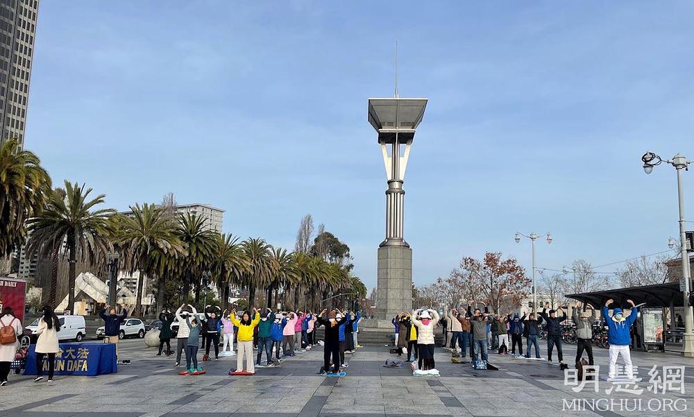 U subotu, 5. februara 2022. godine, petog dana kineske Nove godine, Dafa praktikanti su ponovo došli pred zgrade trajekta. Uz blagu muziku za vježbanje, praktikanti su demonstrirali izvođenje Falun Dafa vježbi.