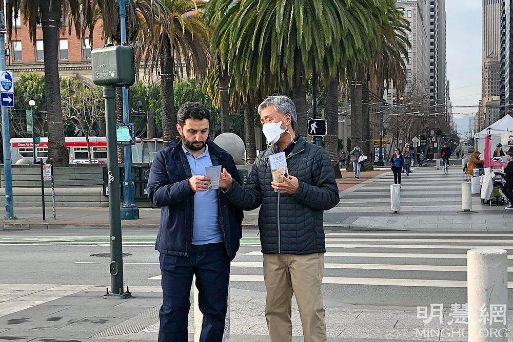 Gospodin James Richard, koji je zastao da posmatra praktikante kako rade vježbe, bio je zainteresovan da sazna više o Falun Dafa. Postavio je mnoga pitanja, uključujući zašto je Falun Dafa progonjen u Kini. Jedan praktikant mu je objasnio: „Falun Dafa je prvi put javno predstavljen u Kini 1992. godine i ubrzo je postao veoma popularan zbog svojih značajnih zdravstvenih koristi. Prema vladinim statistikama, sto miliona ljudi u Kini je u to vrijeme prakticiralo Falun Dafa. Kasnije je tadašnji vođa KPK, Jiang Zemin, pokrenuo kampanju progona jer je bio ljubomoran na popularnost Falun Dafa, a taj progon se, i danas danas, nastavlja.” James je izrazio zabrinutost zbog situacije praktikanata u Kini i rekao da želi da nauči Falun Dafa.