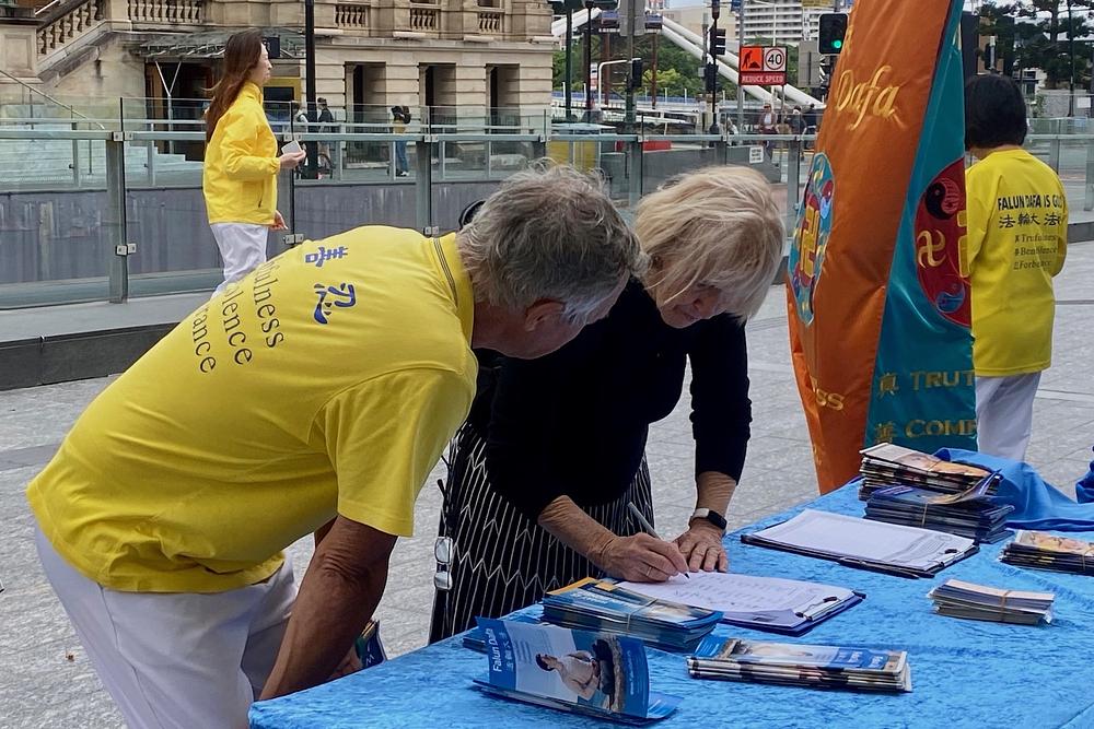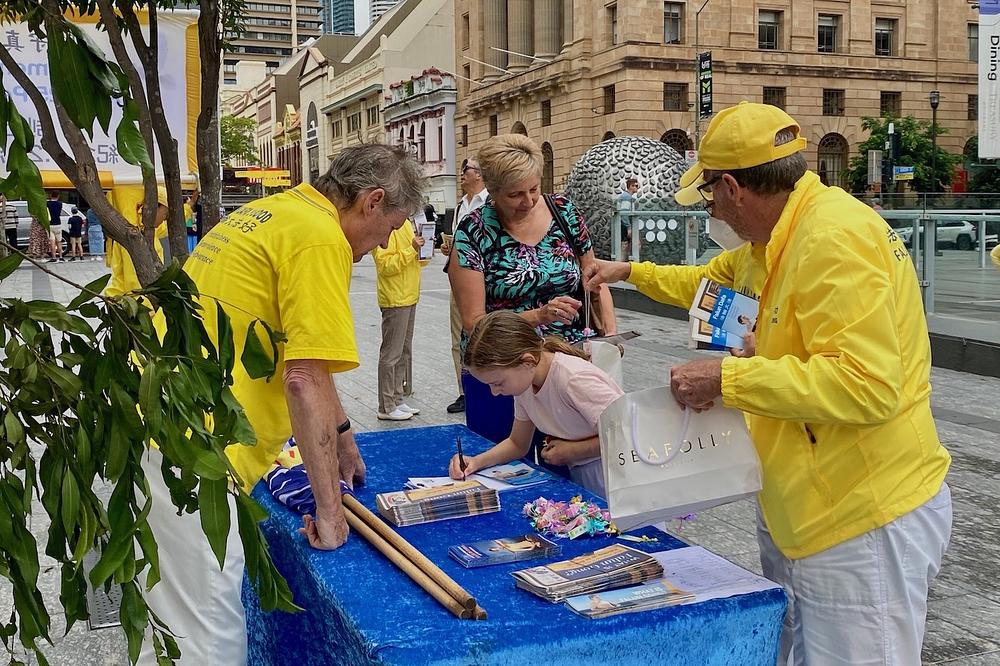 Falun Gong praktikanti su u Queenslandu imali aktivnosti u blizini Brisbane Squarea 23. aprila u znak sjećanja na mirni apel održan u Pekingu prije 23 godine. Demonstrirali su vježbe, postavljali plakate i transparente i dijelili informacije o progonu. Ljudima su objašnjavali da je Falun Gong, koji se naziva i Falun Dafa, progonjen od strane Komunističke partije Kine (KPK) od 1999. godine.