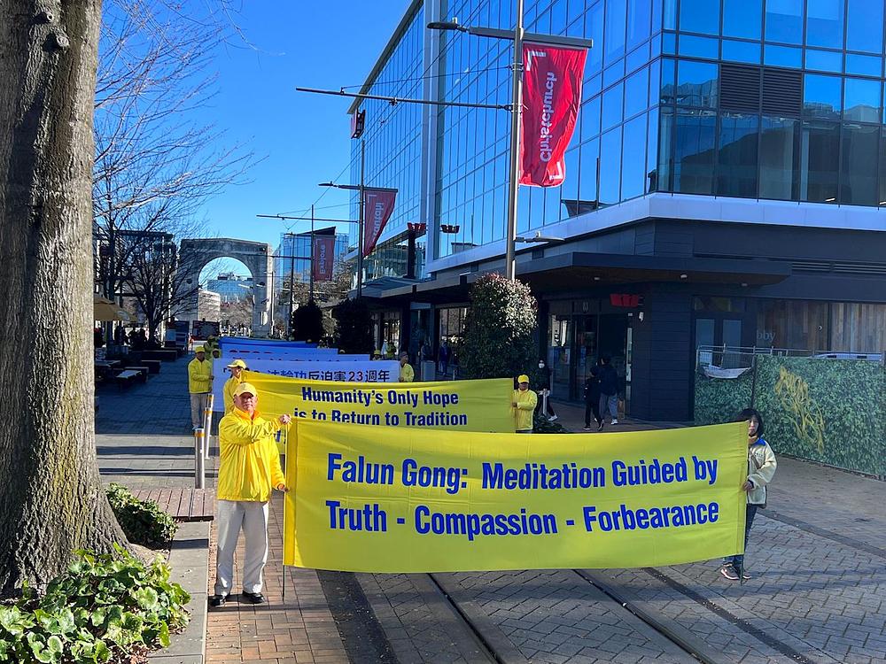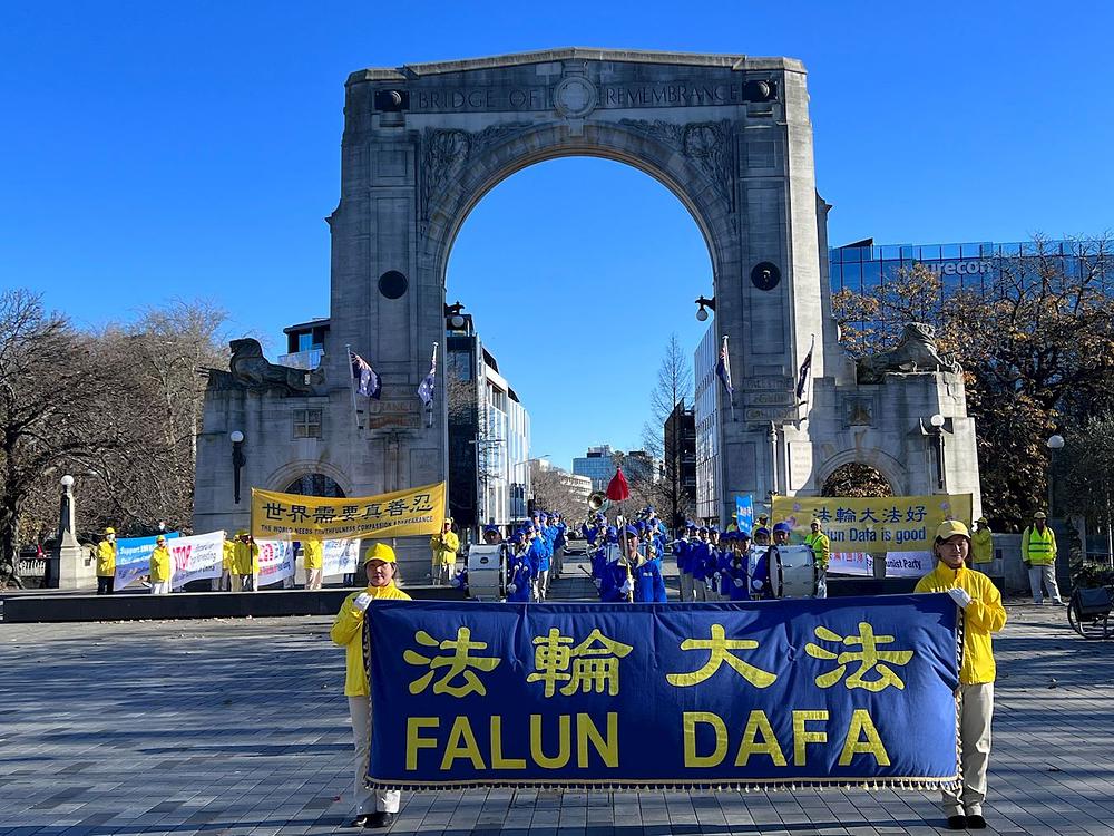 Falun Dafa praktikanti su, 11. juna, u Christchurchu održali skup i mimohod kod Mosta sjećanja. Prolaznicima su govorili o Falun Dafa i kako Komunistička partija Kine (KPK) progoni ovu praksu kultivacije više od dvije decenije. U sklopu ove manifestacije nastupili su Tian Guo Marching Band i dobošarska grupa.