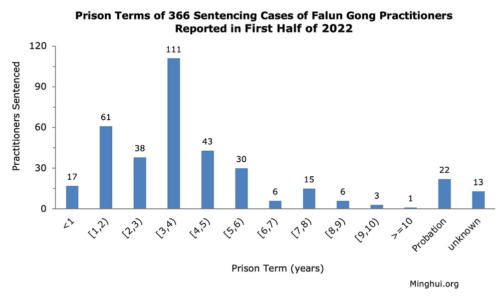 Prijavljeno je da je u prvoj polovini 2022. godine 366 praktikanata Falun Gonga bilo osuđeno zbog svoje vjere