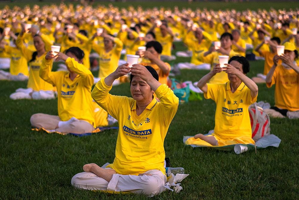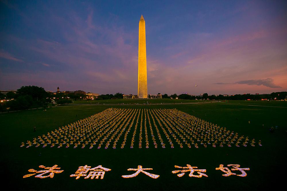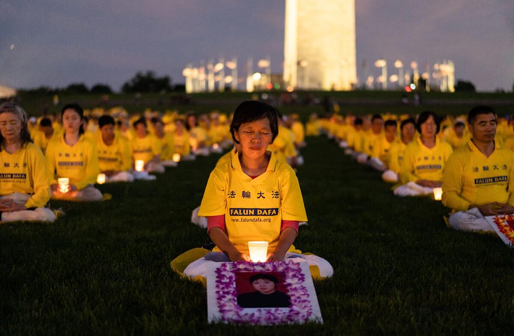 Više od tisuću Falun Dafa praktikanata okupilo se kod spomenika Washingtonu, 21. srpnja 2022. na svečanom bdjenju uz svijeće kako bi oplakivali kolege praktikante koji su izgubili živote u Kini jer su se odbili odreći svoje vjere.