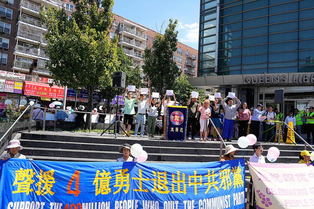 Broj ljudi koji su napustili organizacije Komunističke partije Kine (KPK) je, 3. avgusta u 7 časova ujutro (19 sati po pekinškom vremenu) dostigao cifru od 400 miliona. Globalni servisni centar za napuštanje KPK (Tui Tang) je to proslavio održavanjem skupa u podne ispred Queens Public Library u Flushingu.
