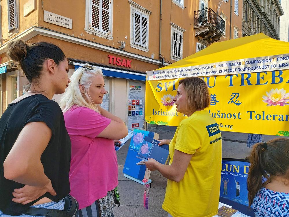 Falun Dafa praktikanti u Hrvatskoj održali su aktivnosti za razotkrivanje progona ove prakse od strane Komunističke partije Kine (KPK) u obalnim gradovima Rovinju i Rijeci, 23. i 25. srpnja. Turisti i lokalno stanovništvo saznali su za Falun Dafa i njegova načela Istinitosti-Suosjećanja-Tolerancije. Mnogi su bili užasnuti kada su čuli pojedinosti o progonu KPK koji traje 23 godine.