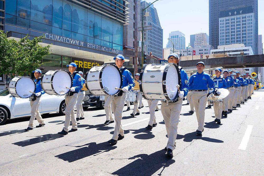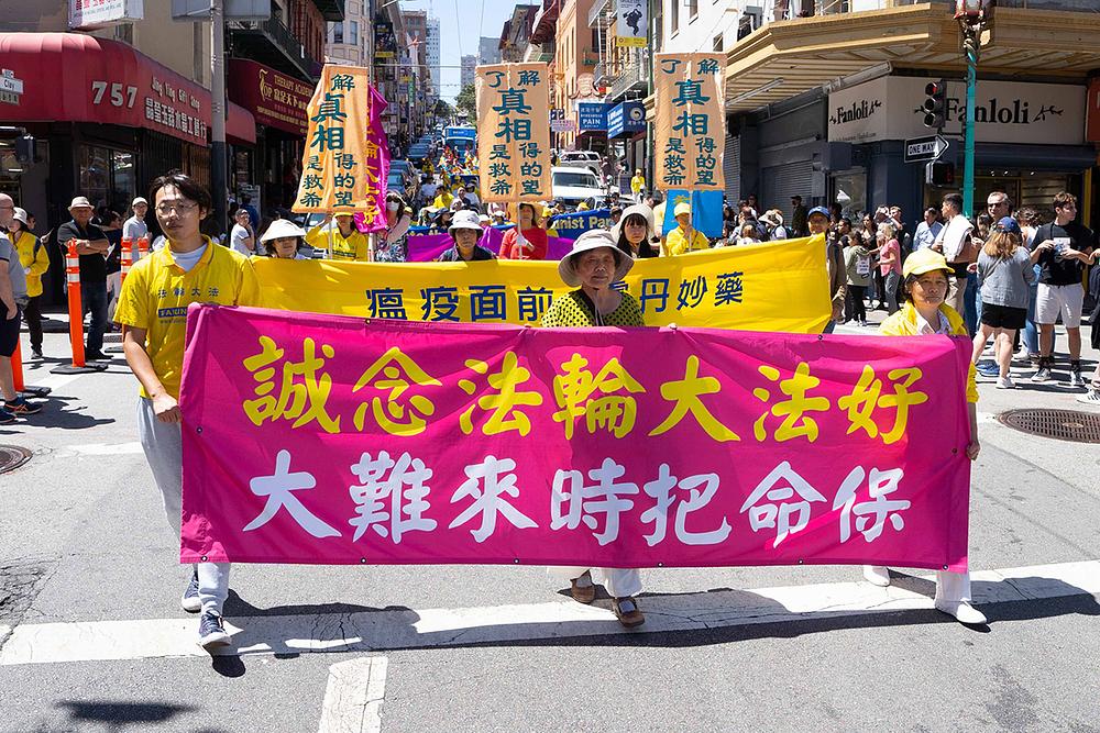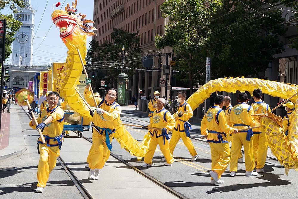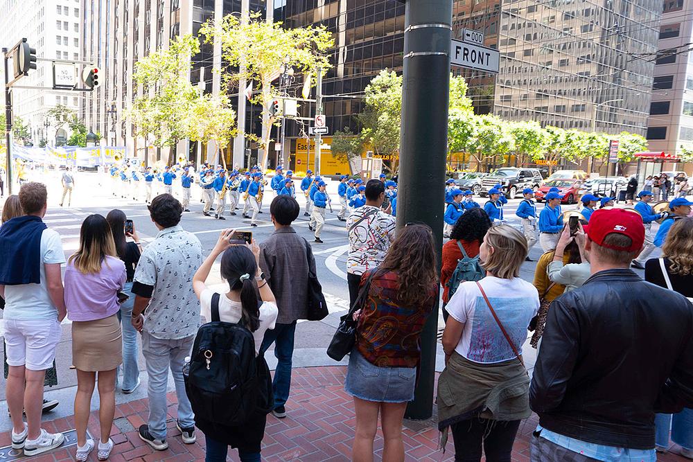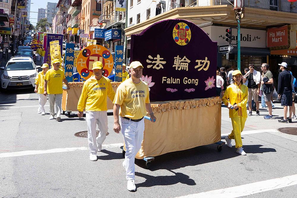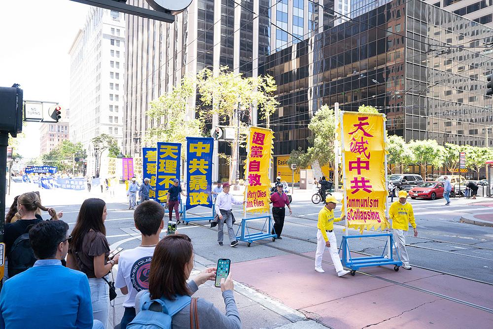 Povorka, sastavljena od nekoliko dijelova, krenula je u 12 sati od Trajektne zgrade. Praktikanti su marširali glavnim ulicama San Francisca prije ulaska u Kinesku četvrt i završetka na Portsmouth Squareu. Ne-praktikanti koji su se pridružili paradi pozvali su svoje kineske sunarodnjake da sagledaju prirodu KPK i da se odvoje od režima kako bi imali svijetlu budućnost.