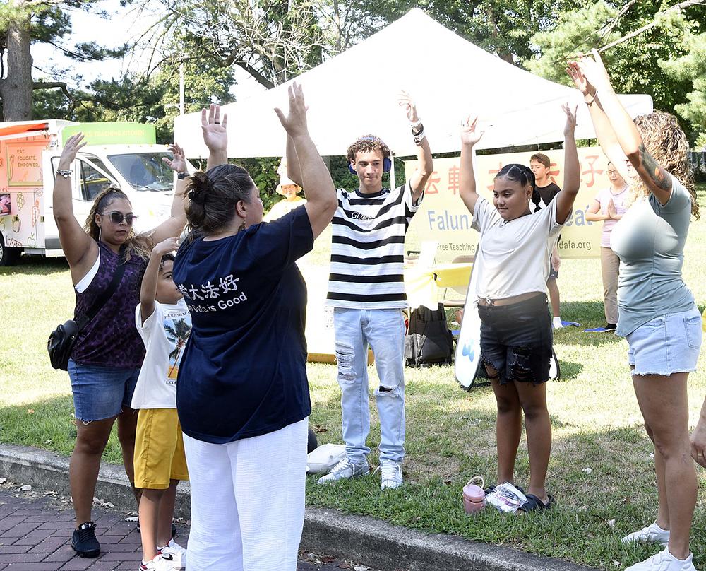 Praktikantica Jennie Sheeks rekla je, da je sretna što je došla na ovaj događaj sa svojom obitelji. Podučavala je nekoliko obitelji Falun Dafa vježbama. Neki od njih su rekli da će nastaviti učiti vježbe putem web stranice LearnFalunDafa.org. Jedna je majka sa svoje troje djece naučila vježbe. Majka je rekla da joj je život stresan i da je tražila nešto što bi joj moglo smanjiti tjeskobu. Njezino najstarije dijete, kćer koja ima devet godina, rekla je da se osjećala mirno i spokojno dok je radila vježbe.