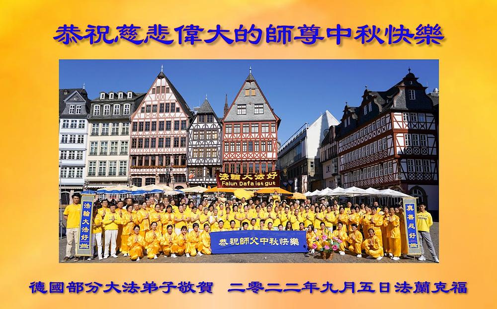Čestitka njemačkih praktikanata. Na baneru se nalaze riječi “Falun Dafa je dobar”.