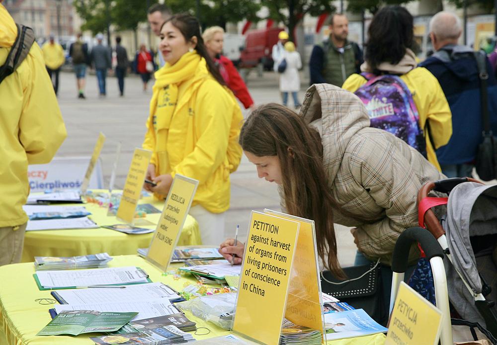 Dve violinistkinje, Dorota Komorovska i Magda, išle su na svoj nastup kada su ugledale praktikante kako meditiraju na bdenju uz sveće. Zaustavile su se i potpisale peticiju. „Kada sam čitala o tome kako KPK vadi organe iz živih Falun Dafa praktikanata i prodaje ih za transplantaciju i kada sam čula šta se dešava u zatvorima i koja je taktika progona, mogla sam samo da razmišljam o tome kako se gubi ljudsko dostojanstvo“, rekla je Magda. „Nakon što sam pročitala samo početak letka, poželela sam da prestane progon, jer je to ubistvo. Potpisala sam peticiju u znak protesta protiv uzimanja organa pod komandom KPK."