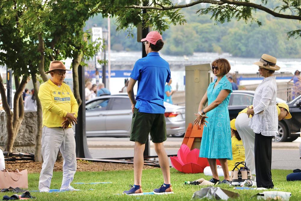 Godišnja doba su se smijenila, stigla je jesen, a svjetski poznati Nijagarini vodopadi nastavljaju da, svakoga dana, privlače veliki broj turista. Mnogo od tih ljudi svrate na Falun Dafa štand i rado saslušaju informacije o ovoj praksi kultivacije i nauče da rade vježbe.