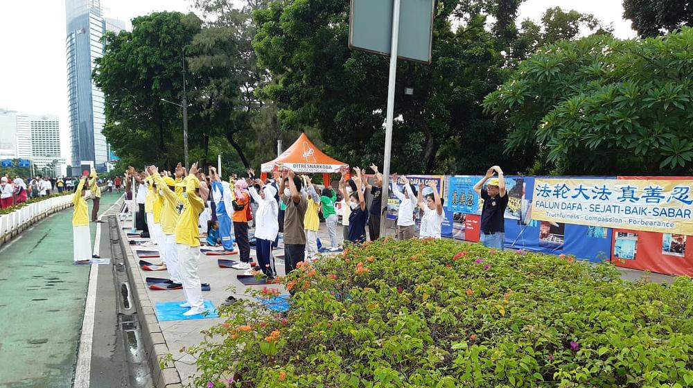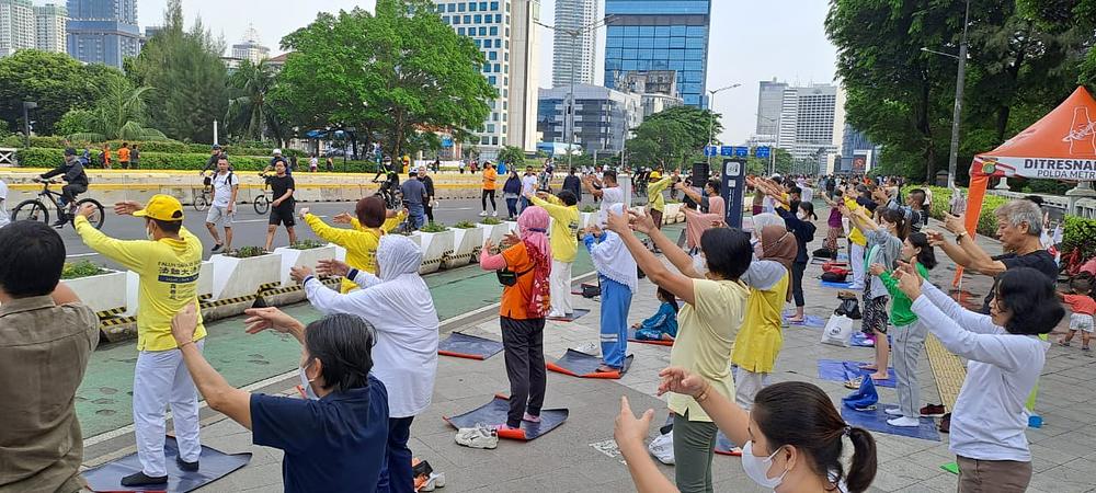 U nedjelju 16. oktobra je, u Jakarti, Indonezija, promovisana inicijativa za Dan bez automobila. Falun Dafa praktikanti su iskoristili ovu priliku da ljude, koji su slobodno hodali ulicama koje su inače bile pune automobila, upoznaju sa praksom. Mirni i blagi pokreti vježbi su privukli veliku pažnju prolaznika.