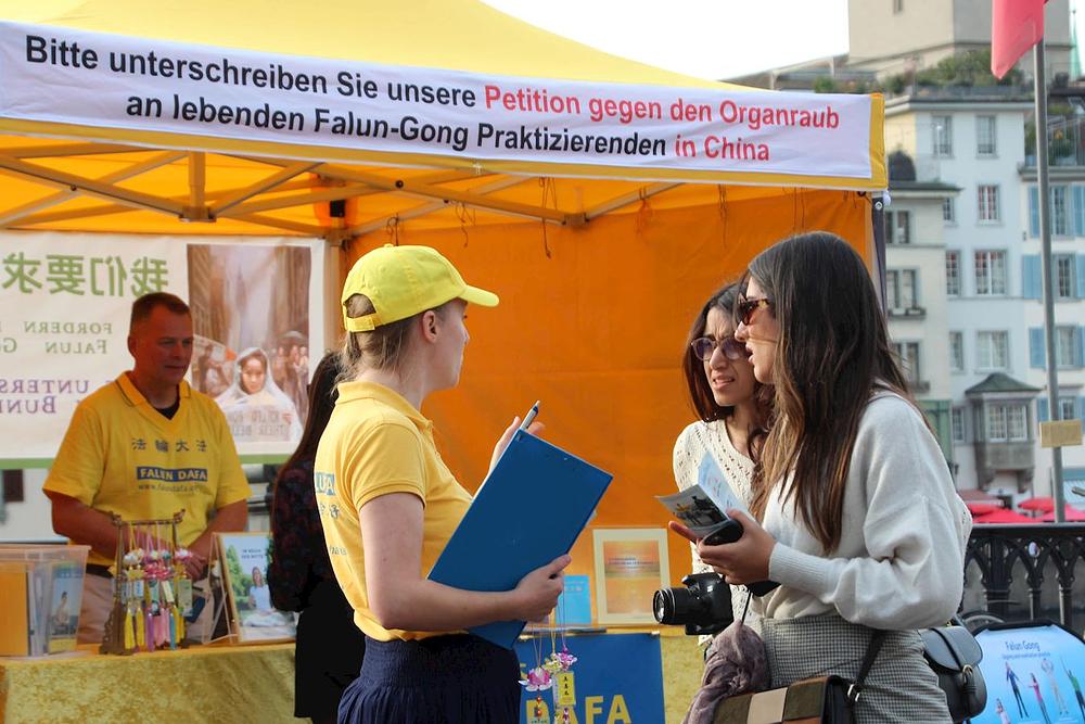 „U današnjem svijetu toliko je mnogo ljudi proganjano zbog svojih ideja, mišljenja i uvjerenja. Ovo se ne može tolerisati”, rekao je Michael Mosiman kada je navratio na događaj održan u Limmatquai, Cirih 29. oktobra 2022. godine. On je rekao da se nada da će njegov potpis pomoći da se zaustavi progon Falun Dafa praktikanata u Kini od strane Komunističke partije Kine (KPK). Također je zamolio svog prijatelja da potpiše peticiju kojom se poziva da se prekinu zvjerstva KPK.