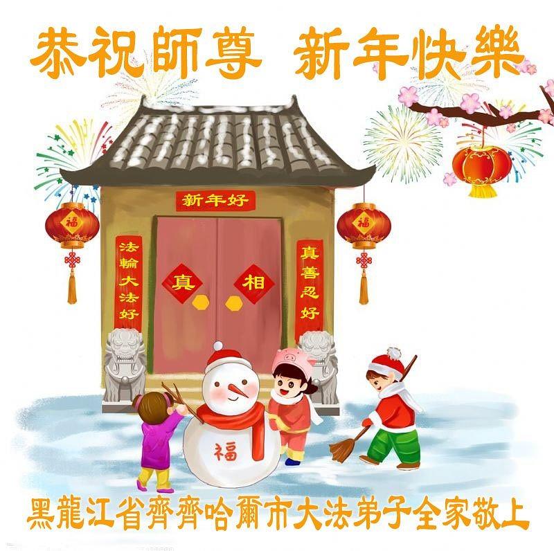 Falun Dafa praktikanti iz grada Ćićihar žele poštovanom Učitelju srećnu Novu godinu!