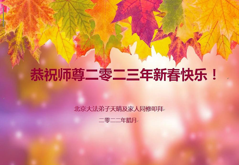 Praktikanti Falun Dafe iz Pekinga s poštovanjem žele Učitelju Li Hongdžiju srećnu Novu godinu (23 čestitke)