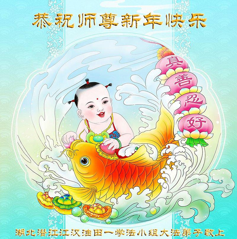 Praktikanti iz grada Iinchuan, Ningkia, napisali su: „Veoma smo zahvalni Učitelju za svu saosećajnost i zaštitu tokom godina. Nastavićemo da radimo dobro i tokom Nove godine, kako u poboljšanju sebe, tako i u spasavanju ljudi. Hvala Učitelju na svemu i srećna Nova godina!”