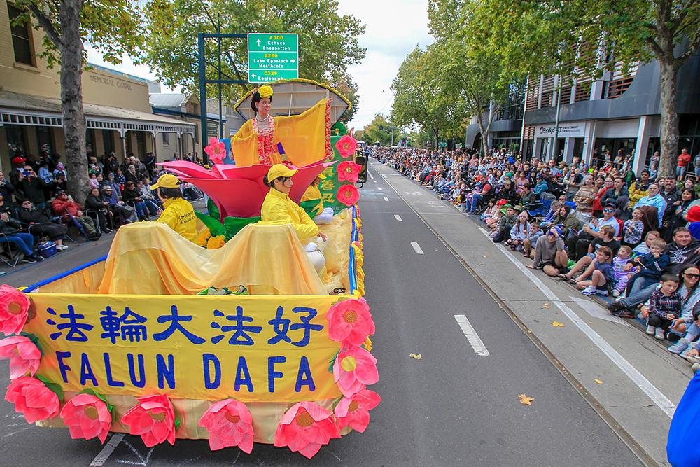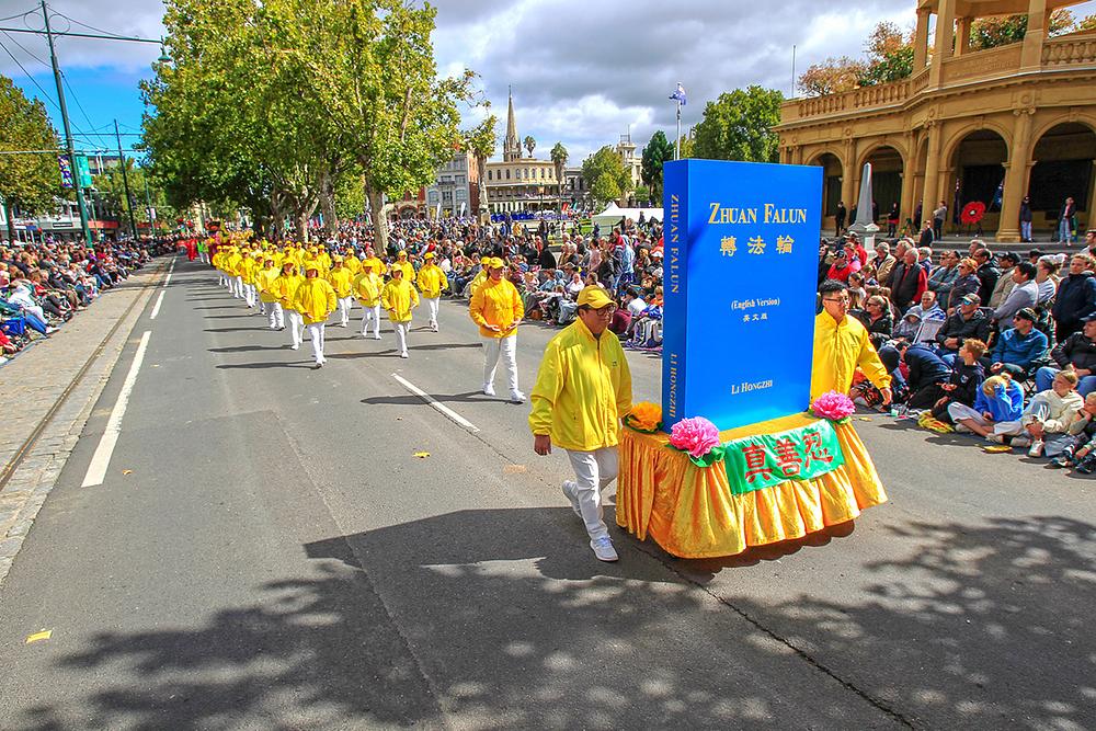Falun Dafa praktikanti ponovno su pozvani da sudjeluju u ovogodišnjoj povorci. Praktikanti iz Melbournea i Sydneya predstavili su ovu praksu kultiviranja uma i tijela kroz niz šarenih prikaza i nastupa koji su uključivali Tian Guo Marching Band i tradicionalne bubnjare.