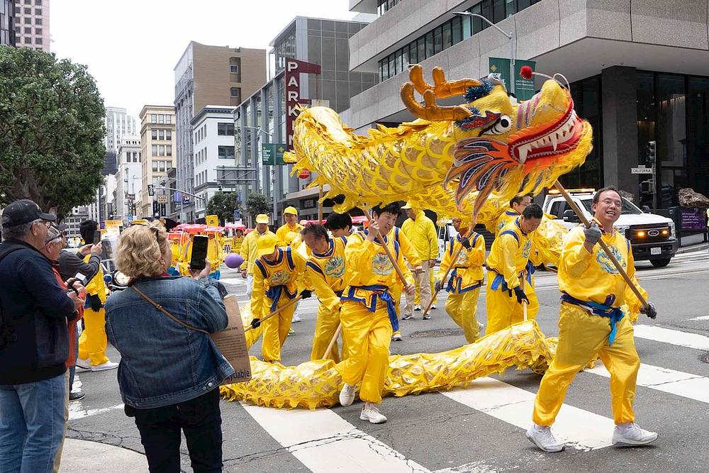 Parada je započela u 12 sati. Krenuvši od Ferry Buildinga, praktikanti su marširali Market Streetom, šetali Kineskom četvrti i završili na Portsmouth Squareu u Kineskoj četvrti.