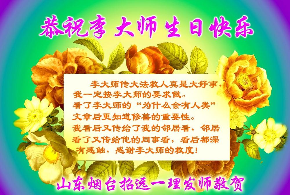 On u svojoj čestitci dalje kaže da je Učitelj Li došao da spasi ljude. Nakon što je pročitao članak „Zbog čega postoji čovječanstvo“, dodatno je shvatio važnost ljubaznosti. „Članak sam podijelio sa svojom susjedom, koja ga je kasnije podijelila sa svojim kolegama. Svima nam se članak jako sviđa”, nastavlja se u pozdravu.