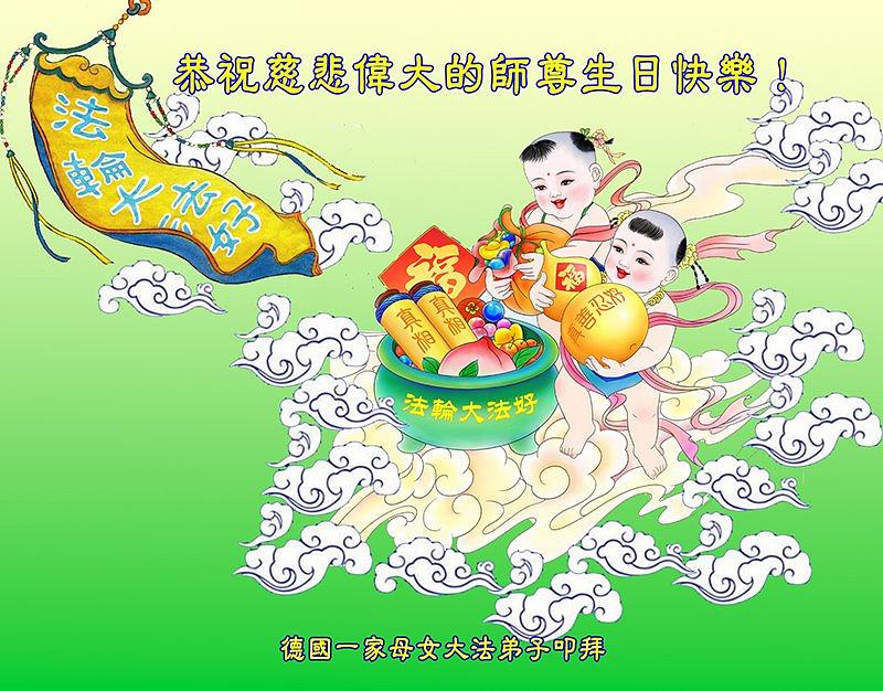 Falun Dafa praktikanti majka i kćer iz Njemačke slave Svjetski Falun Dafa Dan i žele poštovanom Učitelju sretan rođendan!