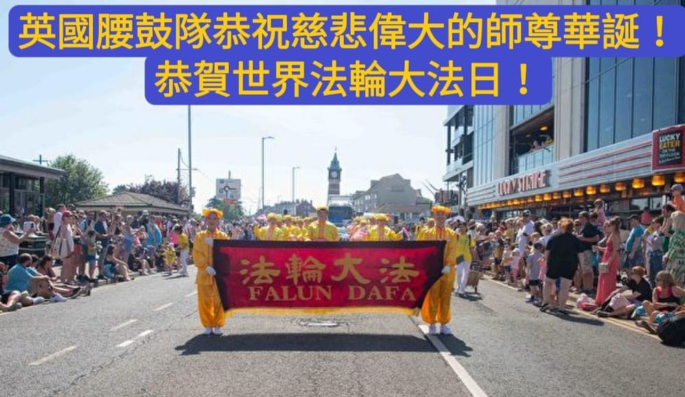 Falun Dafa praktikanti iz dobošarske skupine u Ujedinjenog Kraljevstva slave Svjetski Falun Dafa Dan i žele poštovanom Učitelju sretan rođendan!