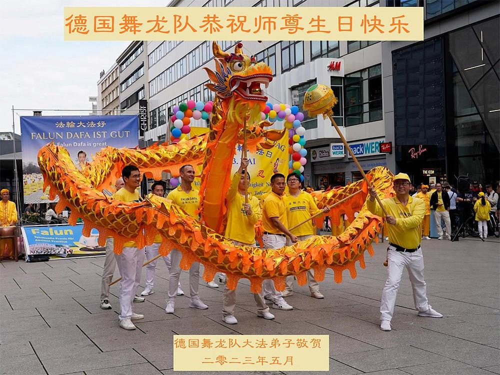 Falun Dafa praktikanti iz zmajevog tima u Njemačkoj slave Svjetski Falun Dafa Dan i žele poštovanom Učitelju sretan rođendan!