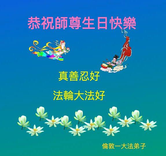 Falun Dafa praktikanti iz online grupe za učenje Fa u Ujedinjenom Kraljevstvu slave Svjetski Falun Dafa Dan i žele poštovanom Učitelju sretan rođendan!