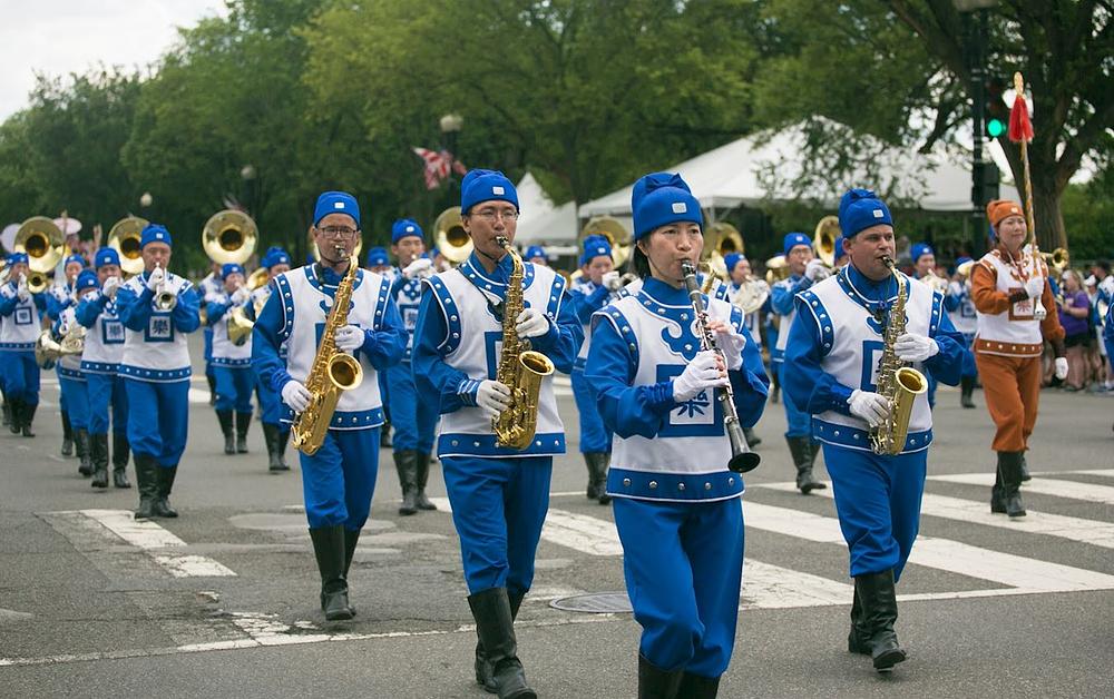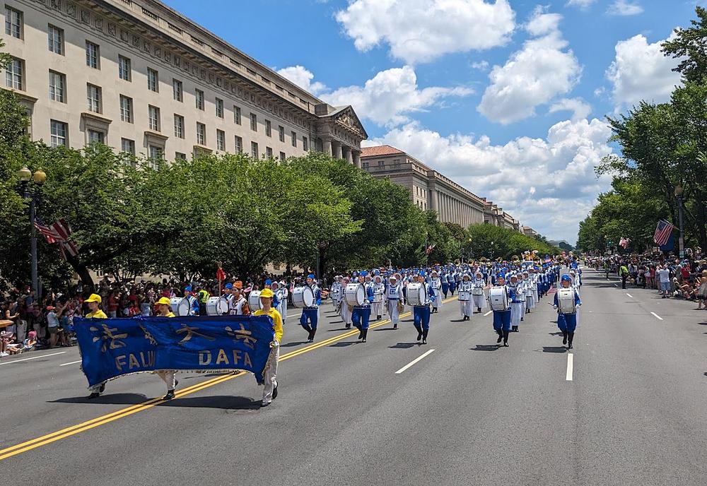 Ove godine obeležava se 16. godina kako je Tian Guo limeni orkestar izabran da bude deo nacionalne parade povodom Dana nezavisnosti. To je ujedno i jedini kineski orkestar na događaju. Organizatori su pozvali praktikante da proslave ovu priliku nošenjem ogromnog balona. Nekoliko praktikanata je demonstriralo pet vežbi na prelepo ukrašenom splavu koji je sa obe strane bio ukrašen porukom „Falun Dafa je dobra“, „Istinitost-Blagost-Trpeljivost“. Praktikantkinje odevene kao vile hodale su pored splava.
