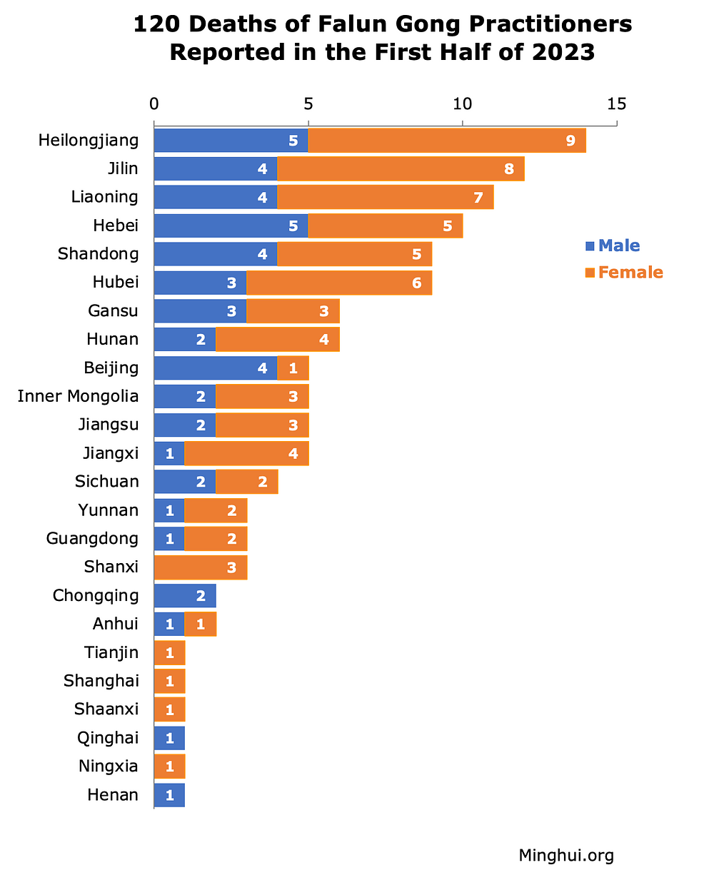 U prvoj polovini 2023. godine potvrđeno je ukupno 120 smrtnih slučajeva Falun Gong praktikanata koji su progonjeni na smrt zbog podržavanja svoje vjere.