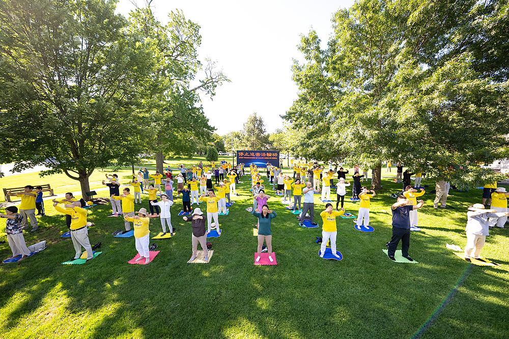 Praktikanti su započeli događaj demonstracijom Falun Dafa vježbi. Držali su transparente na engleskom i kineskom jeziku na kojima je pisalo: „Stop progonu Falun Gonga u Kini” i „Stop ubijanju radi organa”. Lokalni ljudi su se zaustavljali da bi slušali govornike na skupu, a vozila u prolazu su trubili da pokažu svoju podršku.