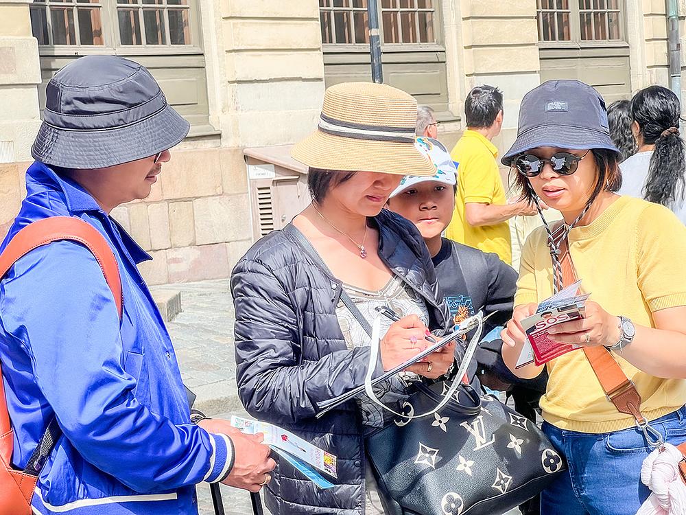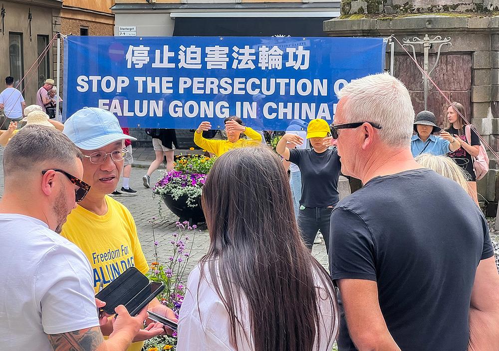 Falun Dafa praktikanti su održali informativne događaje ispred Muzeja Nobelove nagrade u Stockholmu svake subote poslijepodne u srpnju 2023. Mirna atmosfera dok su izvodili vježbe privukla je mnoge ljude, koji su zastali da saznaju više o Falun Dafa. Nakon što su čuli za brutalni progon Falun Dafa u Kini, potpisali su peticiju kojom pozivaju na prekid zločina. Nekoliko ljudi je reklo da su zainteresirani za učenje Falun Dafa vježbi.