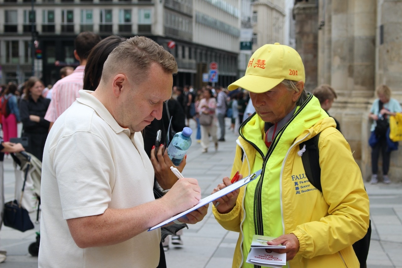 Praktikanti iz cijele Evrope su se, 4. i 5. augusta 2023. okupili u Beču, Austrija na nizu događaja, uključujući paradu i skup, kako bi ljudima govorili o progonu Falun Dafa od strane Komunističke Partije Kine (KPK), koji još uvijek traje u Kini.