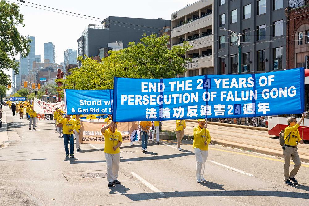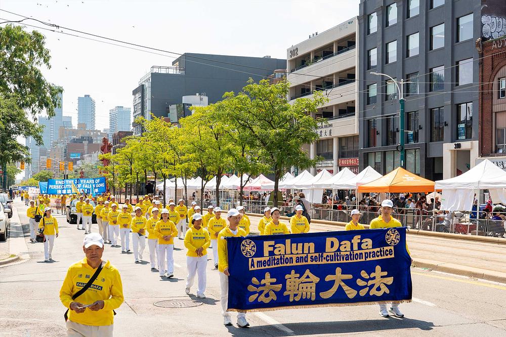 Falun Dafa praktikanti su u subotu, 19. avgusta 2023., održali povorku proslave u centru Toronta kako bi podržali 417 miliona Kineza koji su povukli članstvo iz Komunističke partije Kine (KPK) i njenih omladinskih organizacija. Povorka je počela u Clarence Parku i prošla ulicama Kineske četvrti.
