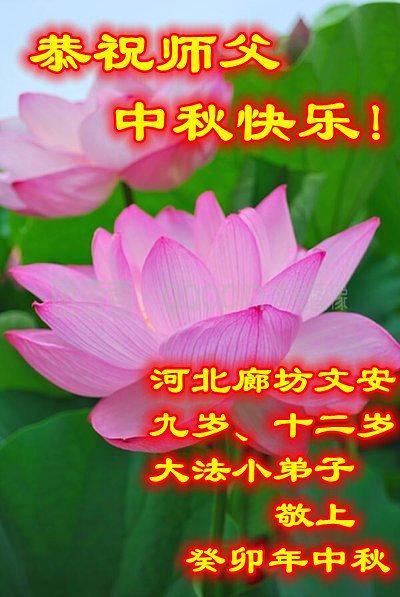 Nadolaskom Festivala sredine jeseni, mnogi Falun Dafa praktikanti šalju svoje iskrene čestitke Učitelju Li Hongzhiu, osnivaču prakse. Praktikanti iskazuju zahvalnost Učitelju za sve blagodati primljene kultivacijom i zavjetuju se kako će biti još marljiviji u svakodnevnoj kultivaciji.