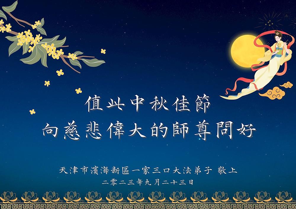 Falun Dafa praktikanti iz Tjenđina s poštovanjem žele Učitelju Li Hongdžiju srećan Praznik sredine jeseni (27 čestitki)