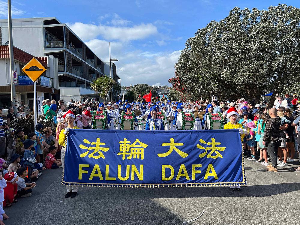 Falun Dafa praktikanti na Novom Zelandu pozvani su da sudjeluju u osam božićnih parada između 1. i 3. prosinca 2023. Osam gradova uključivalo je Hamilton, tri predgrađa Aucklanda i dva susjedna područja (sva se nalaze na Sjevernom otoku) i Ashburton i Timaru na Južnom otoku. Posjetitelji povorke mogli su vidjeti tim praktikanata s bubnjevima, tim za zmajev ples ili Tian Guo Marching Band.