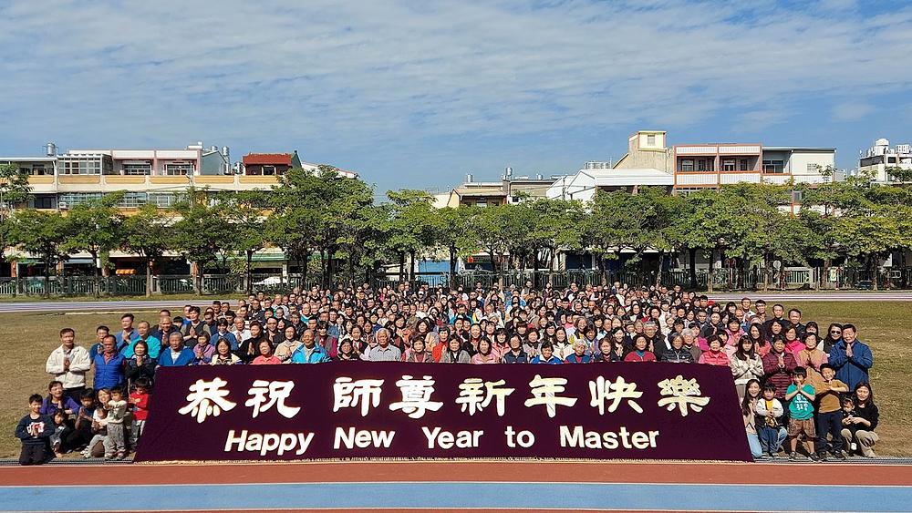 Praktikanti u središnjem Tajvanu okupili su se u Osnovnoj školi Shetou u okrugu Changhua, kako bi čitali učenja Falun Dafa i poželjeli osnivaču prakse Učitelju Li-ju sretnu Nova godinu.