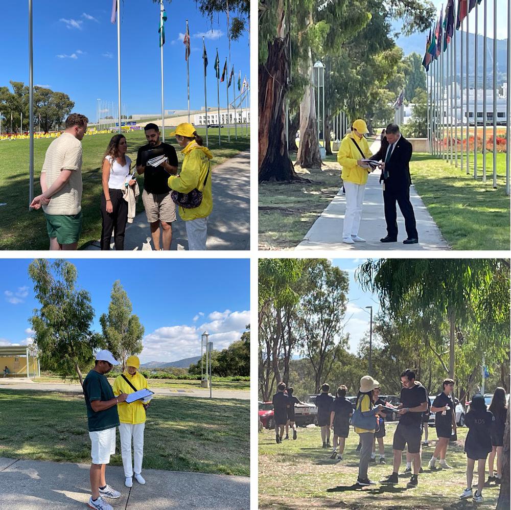 Falun Dafa praktikanti održali su skup ispred zgrade parlamenta u Canberri, u Australiji, 27. ožujka 2024. Pozvali su australsku vladu da pomogne zaustaviti gotovo 25-godišnji progon kojeg provodi Komunistička partija Kine (KPK) i da pomogne osigurati oslobađanje progonjenih Falun Dafa praktikanata koji su članovi obitelji stanovnika Australije.
