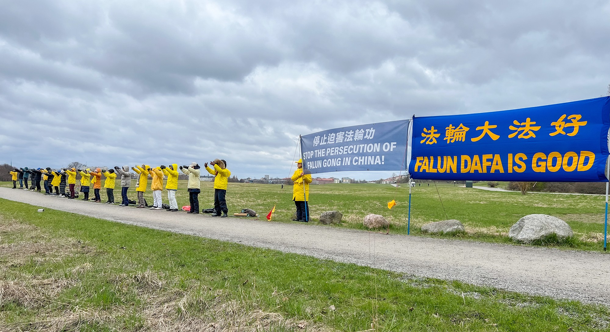 Prošlo je 25 godina, a svake godine praktikanti dolaze u kinesko veleposlanstvo u Švedskoj kako bi ljudima predstavljali Falun Dafa miroljubivim podizanjem svijesti o tome što se događa u Kini i kako bi pozvali na prestanak brutalnosti.