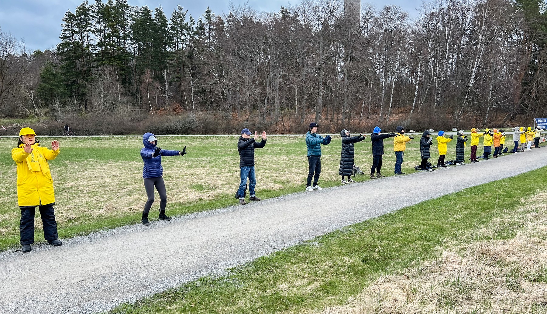 Godišnji proljetni polumaraton održan je u Stockholmu istog dana. Iako je bilo hladno i vjetrovito, ulice su bile prepune ljudi i automobila. Praktikanti su demonstrirali vježbe na travnatoj površini preko puta kineskog veleposlanstva i istaknuli su privlačne transparente s natpisima "Falun Dafa je sjajan" i "Stop progonu Falun Gonga". Također su distribuirali informacije i razgovarali s ljudima o progonu u Kini, koji sada ulazi u 25 godinu.