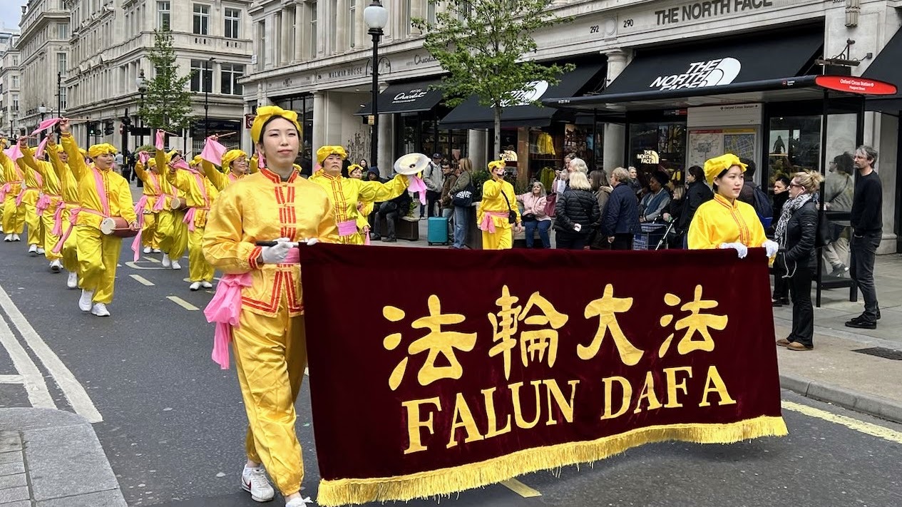 Praktikanti su održali paradu u središtu Londona 20. travnja 2024. u znak sjećanja na 25. godišnjicu apela održanog 25. travnja 1999. godine u Pekingu. Predstavili su Falun Dafa (također poznat kao Falun Gong) i prosvjedovali protiv progona kojeg vrši Komunistička partija Kine (KPK). Povorka je prošla kroz poslovnu zonu Londona i kinesku četvrt, a završila je preko puta ureda premijera. Nakon toga je održana konferencija za novinare.