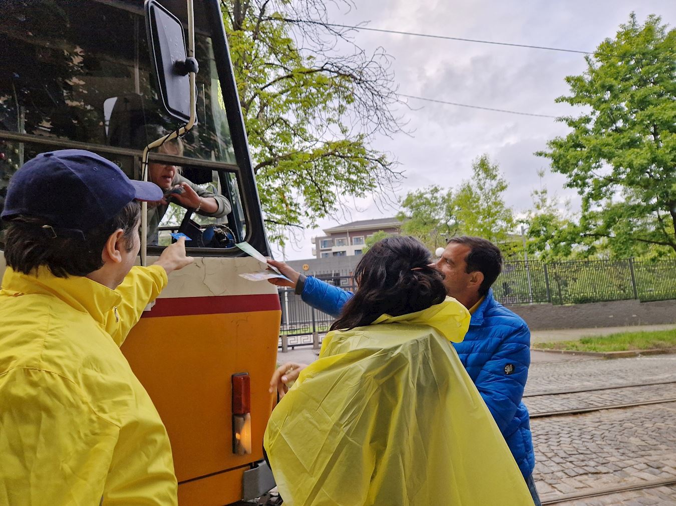 Automobili na ulici također su usporili kako bi pročitali natpise na transparentima praktikanata, a čak je i vozačica tramvaja zaustavila svoj tramvaj kako bi pitala praktikante o njihovom događaju. Objasnili su joj i dali joj letak.