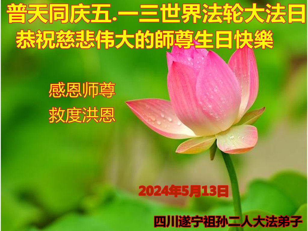 Falun Dafa praktikanti iz provincije Sečuan slave Svjetski dan Falun Dafe i s poštovanjem žele Učitelju Li Hongzhiju sretan rođendan (23 čestitke)