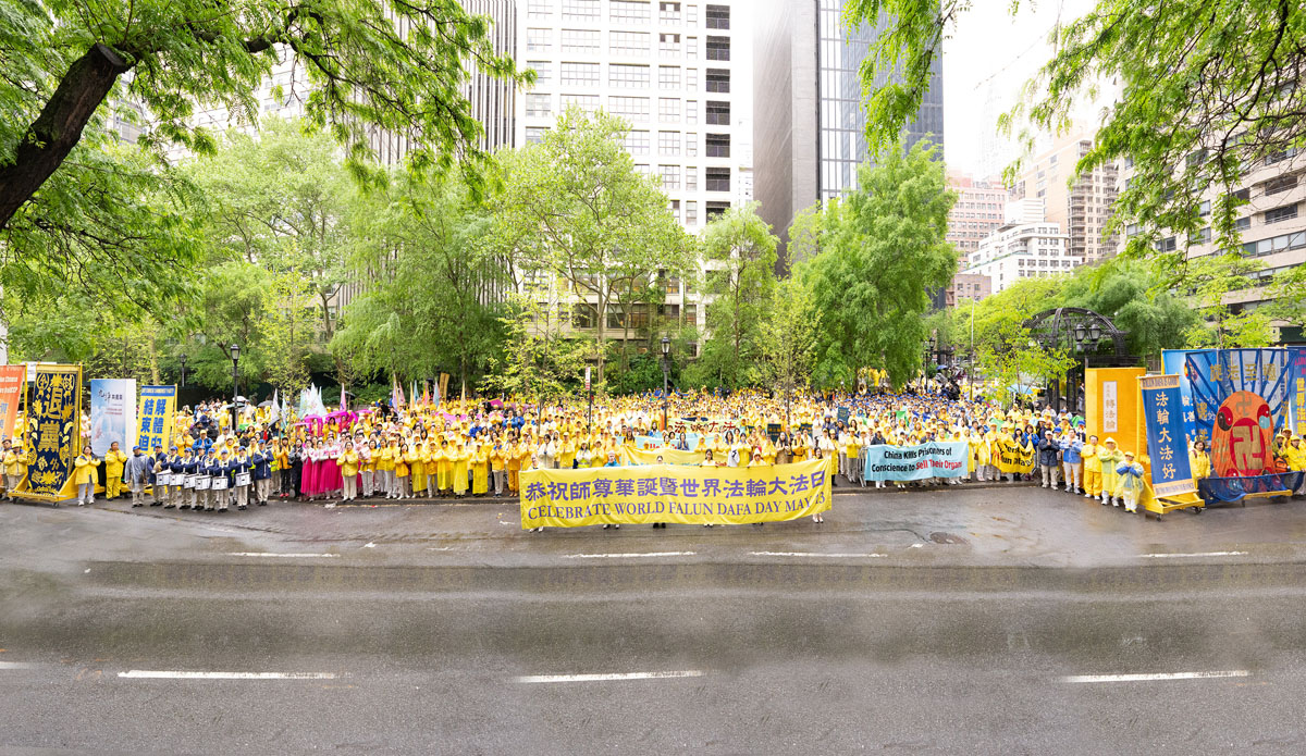 Gospodin Zhongyuan Yi, organizator parade i predstavnik njujorškog Falun Dafa udruženja, rekao je: „Danas je 32. godišnjica javnog predstavljanja Falun Dafe. Održali smo veliku paradu u celoj 42. ulici na Menhetnu da pokažemo svetu čudo Falun Dafe i koliko je Dafa rasprostranjena. Istovremeno, izražavamo zahvalnost Učitelju i želimo mu srećan rođendan.”