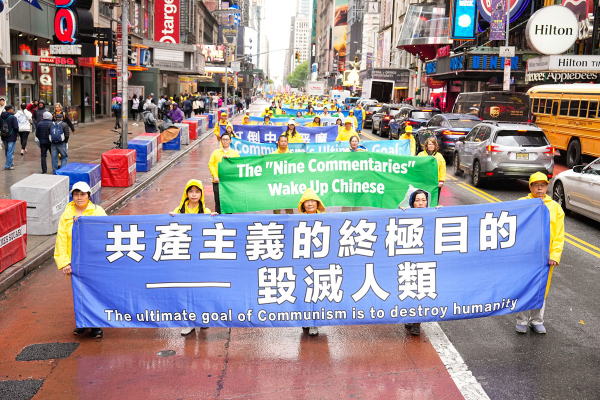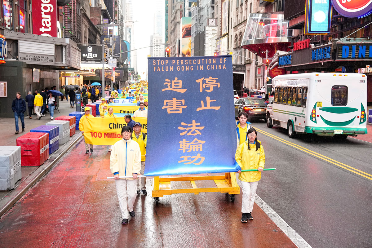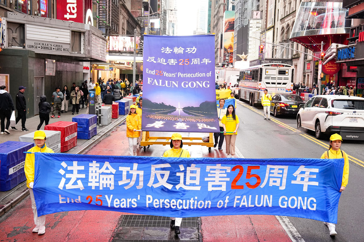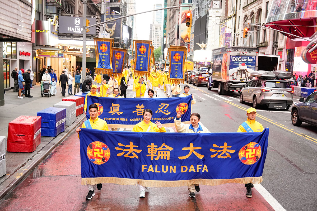 Praktikanti su održali paradu na Menhetnu u Njujorku 10. maja 2024. kako bi proslavili 25. Svetski dan Falun Dafe i 32. godišnjicu javnog predstavljanja Falun Dafe i poželili Učitelju Li srećan rođendan.