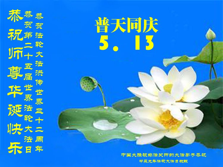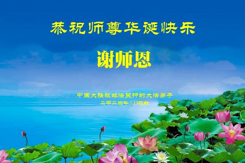U posebnoj prigodi obilježavanja 32. godišnjice javnog predstavljanja Falun Dafa i 73. rođendana Učitelja Li Hongzhija 13. svibnja 2024., Minghui.org prima niz čestitki od praktikanata diljem svijeta. Među njima je posebna skupina praktikanata, koji su trenutno zatvoreni u kineskim pritvorskim centrima ili zatvorima zbog podupiranja svoje vjere. Unatoč cenzuri informacija, ipak su uspjeli objaviti svoje poruke kako bi izrazili svoju zahvalnost ovoj praksi i osnivaču Dafa.