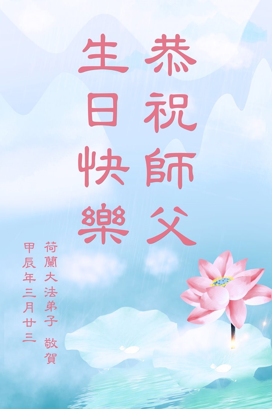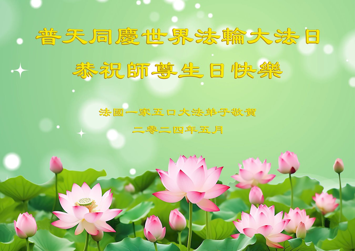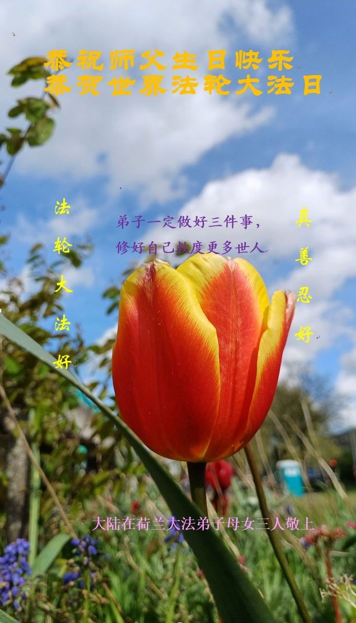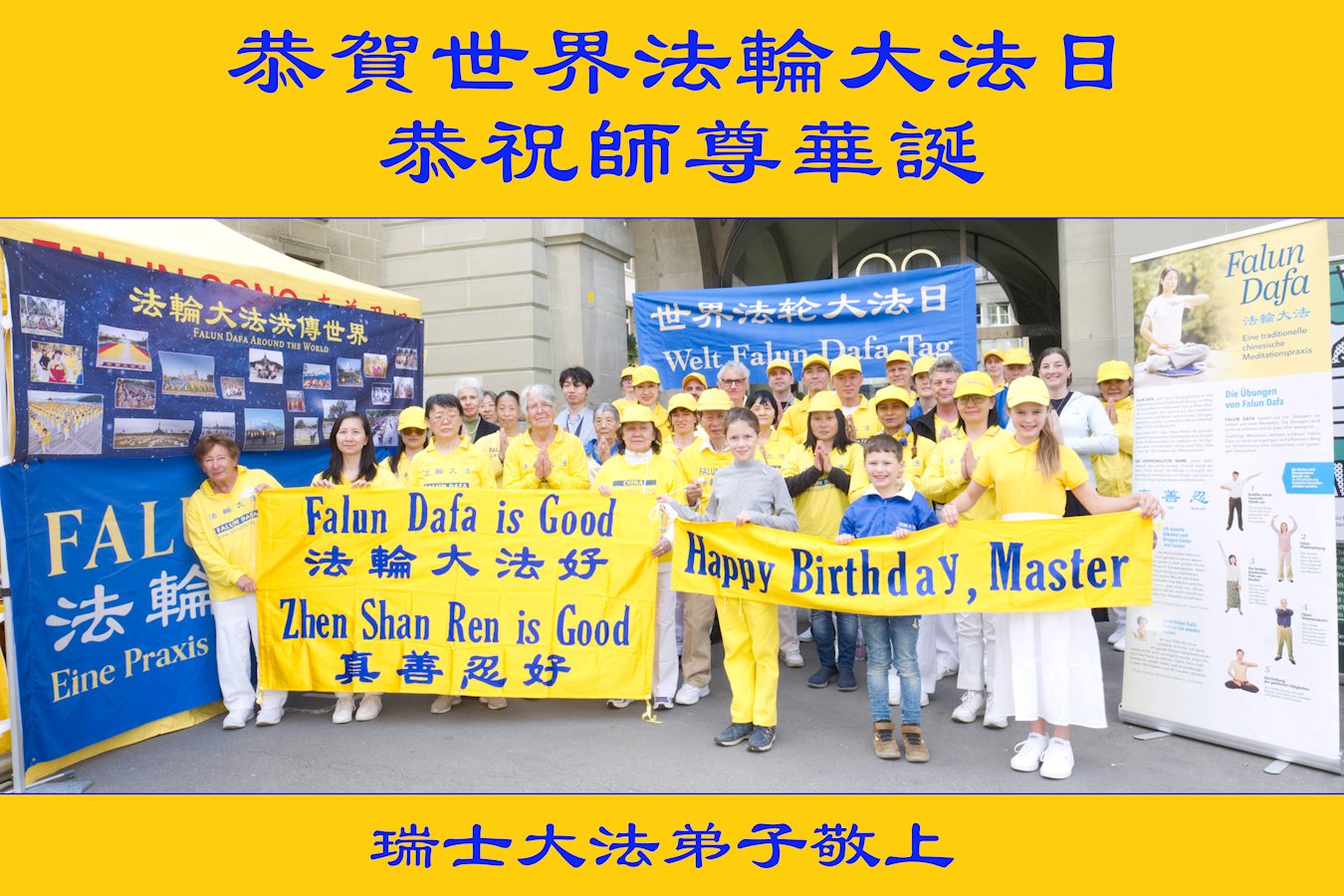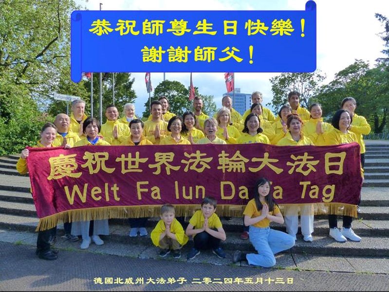 Praktikanti u Francuskoj, Njemačkoj, Nizozemskoj, Velikoj Britaniji, Irskoj, Austriji i Švicarskoj slave Svjetski dan Falun Dafa i 32. godišnjicu predstavljanja Falun Dafa javnosti. Poštovanom Učitelju s poštovanjem žele sretan rođendan!