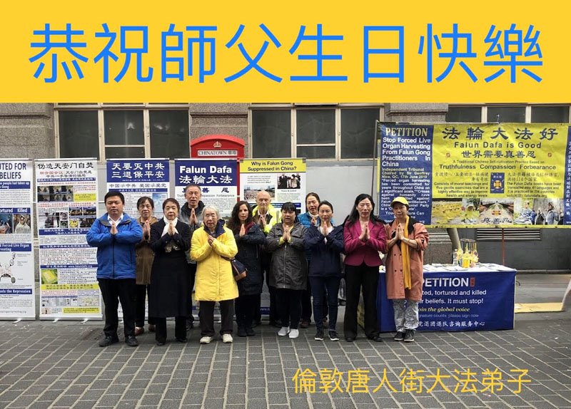Čestitka Učitelju od praktikanata u londonskoj kineskoj četvrti - mjesto za objašnjavanje istine u UK