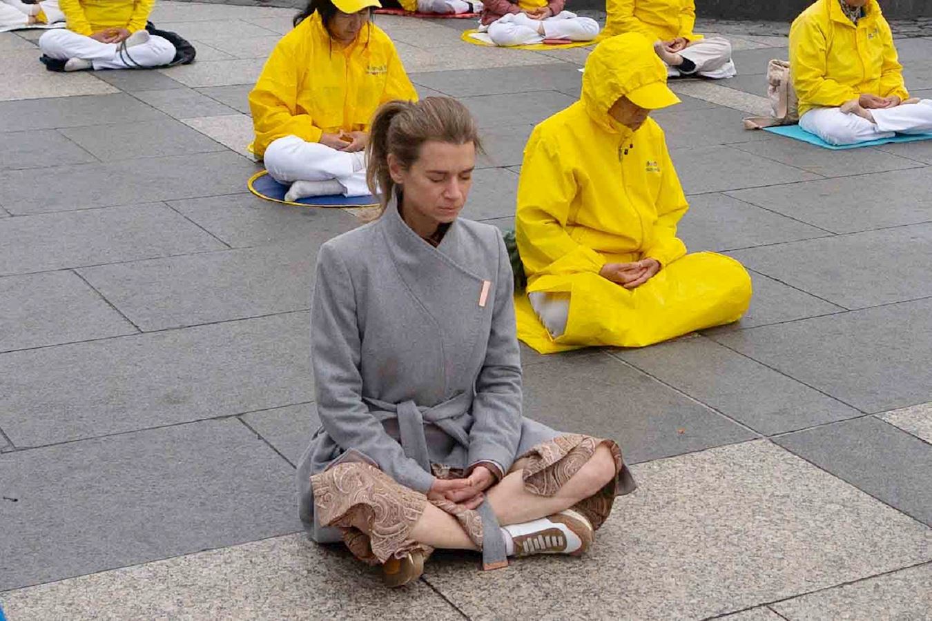 Predstave su privukle pažnju mnogih prolaznika. Arin i njegova supruga Shay iz Los Angelesa su zastali i gledali. Shay je rekla da je osjećala mir gledajući praktikante kako rade vježbe. “Na najprometnijim ulicama na svijetu praktikanti spokojno rade vježbe. Zanimljivo je da su u stanju ostati koncentrisani, možete osjetiti kako energija prolazi kroz ovo mjesto.”