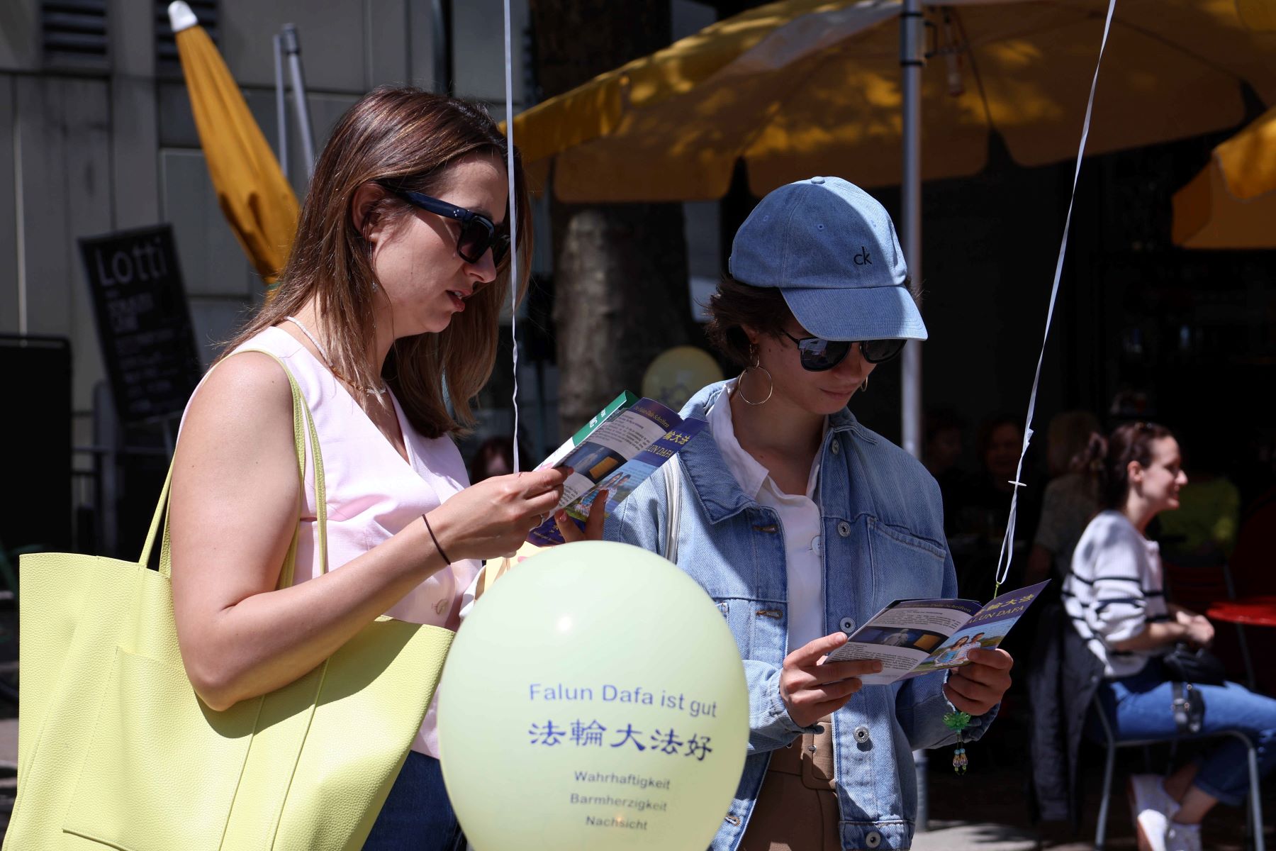 Gosti koji su obedovali u restoranima i prolaznici oko trga mogli su da čuju o Falun Dafi i Dafinim principima istinitosti, blagosti, trpeljivosti.