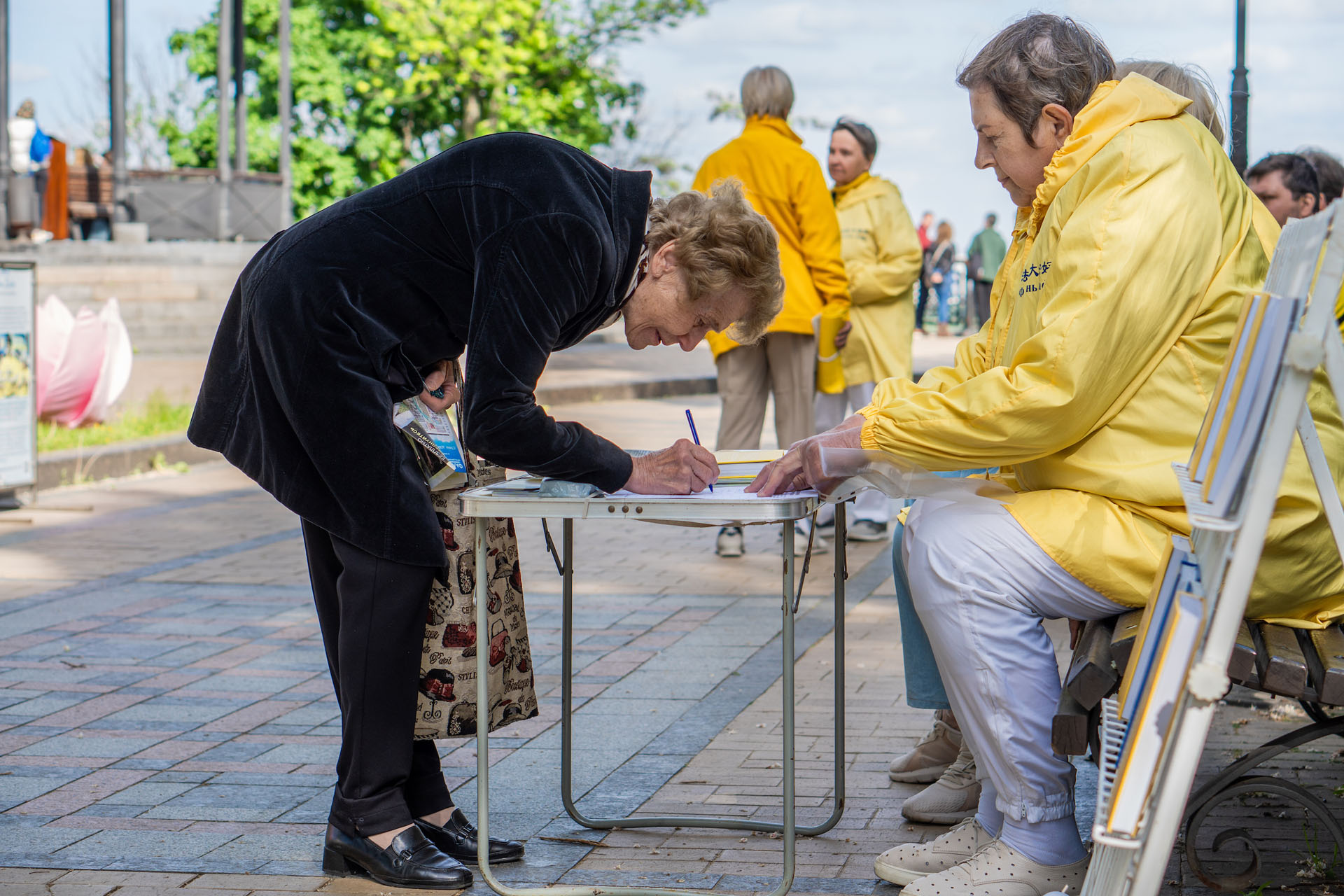 Ludmila, koja je organizovala ovogodišnju aktivnost, ove godine ima 76 godina. Ona prakticira već 24 godine. Ljudi se obično iznenade kada saznaju za njene godine budući da izgleda mnogo mlađe. Puna je snage i energije. Ljudmila to pripisuje svom prakticiranju Falun Dafa.