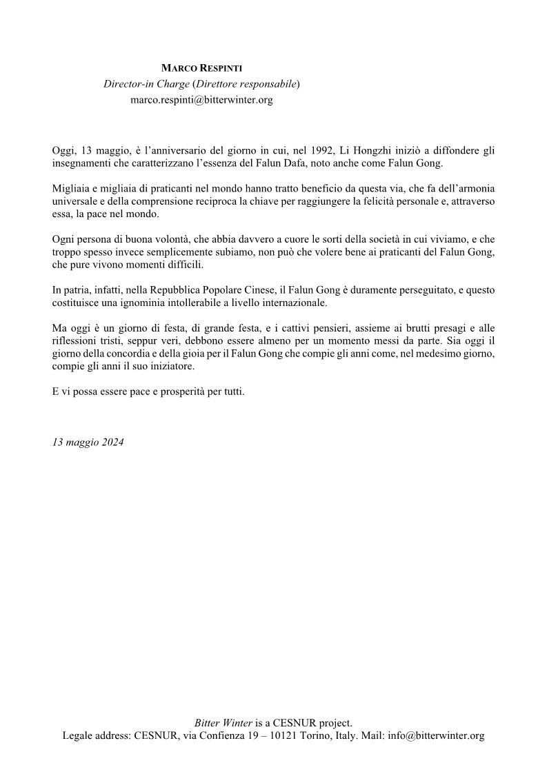 Pietrangelo Massaro je napisao: „Deklaracija za Svetski dan Falun Dafe, 13. maja 2024.”